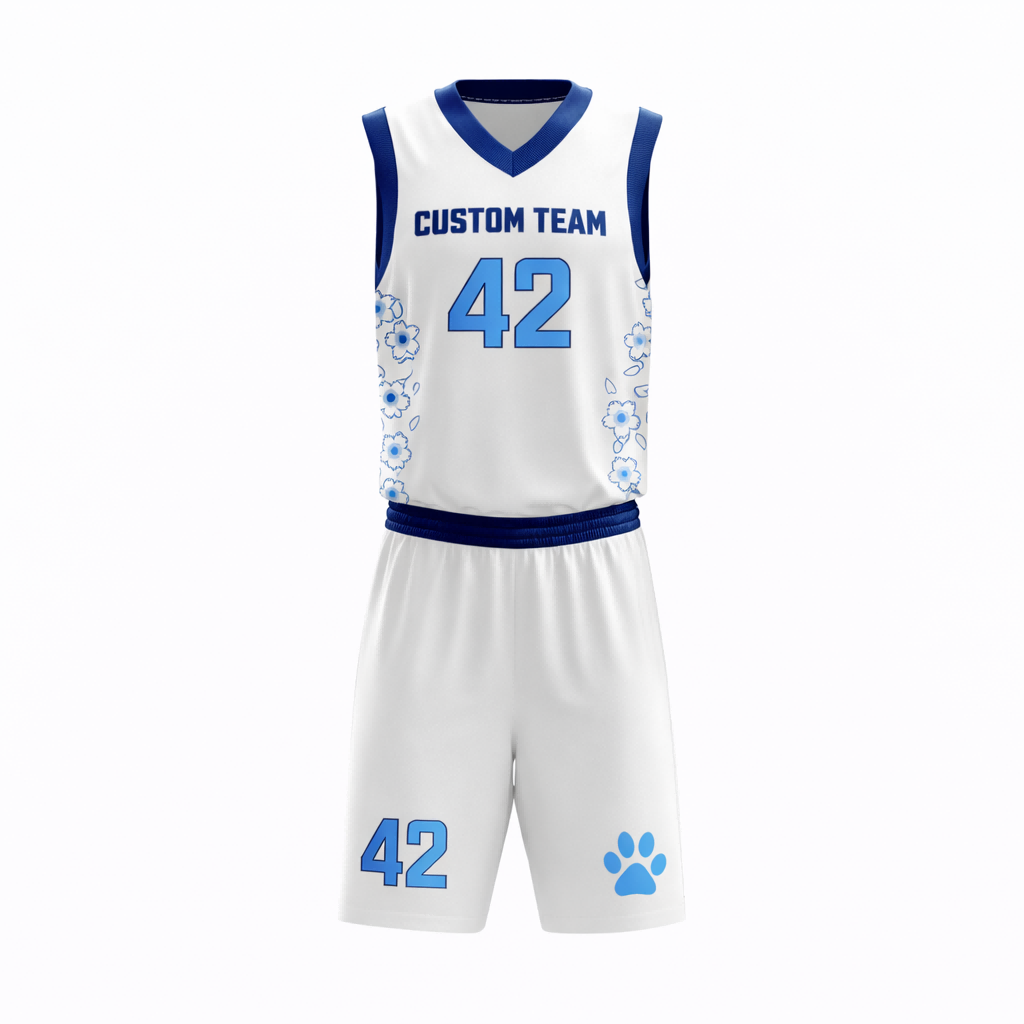 Custom White and Light Blue Floral Basketball Jersey Set
