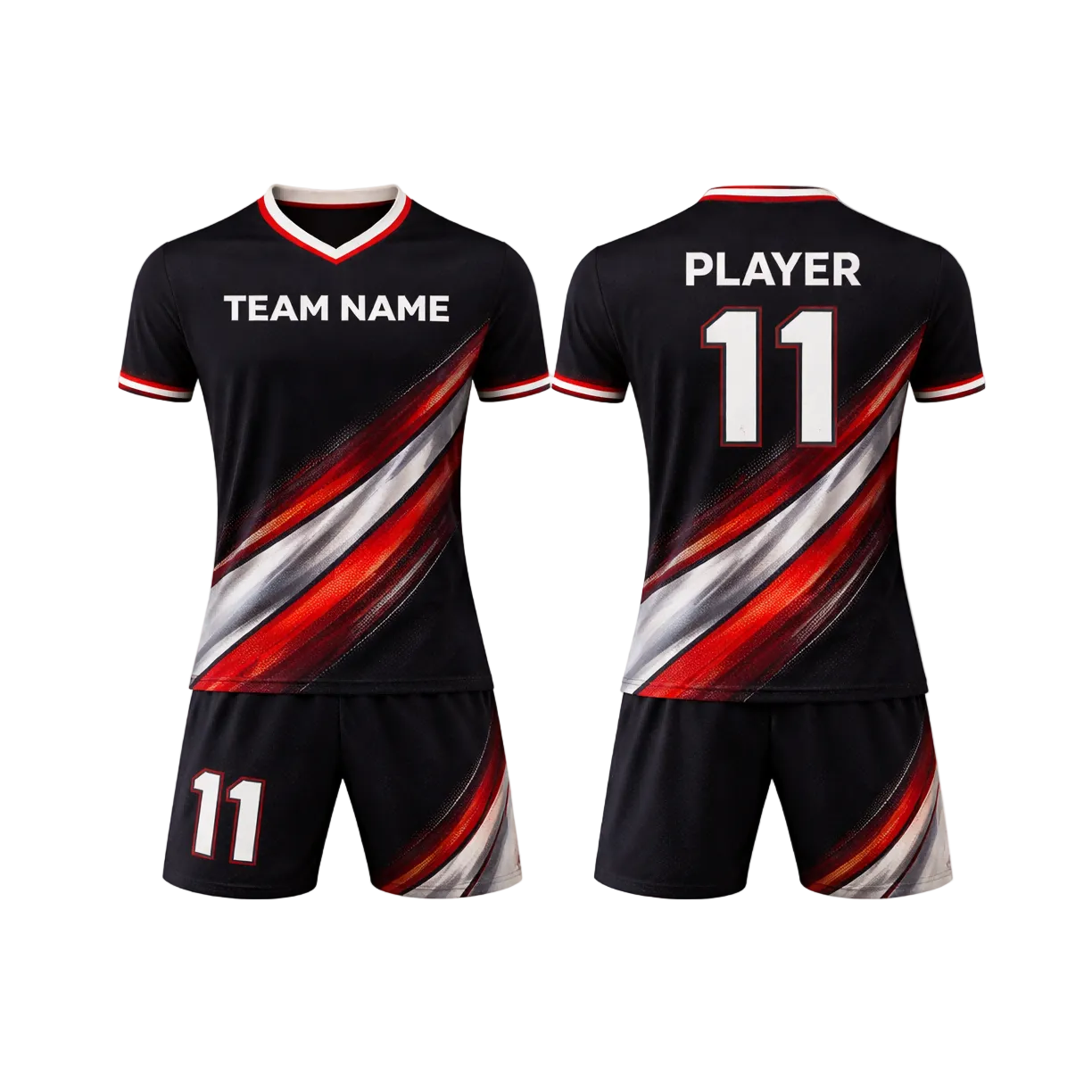 Customizable Black Red White Striped Soccer Jersey - Team Soccer Set